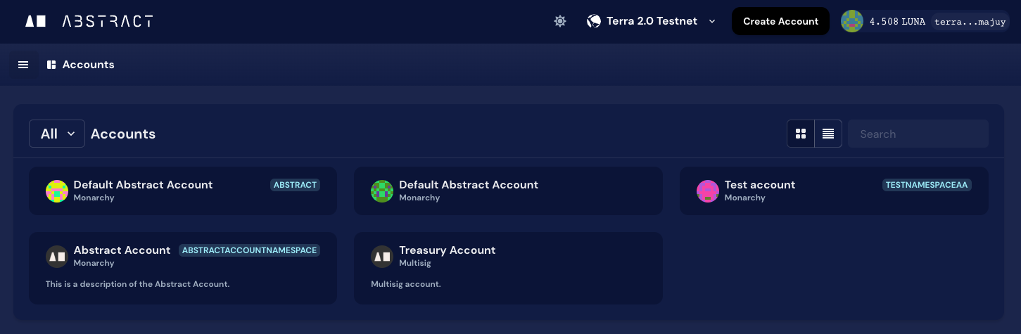 The Abstract SDK provides what we call an Abstract Account, an extensible smart-contract wallet capable of holding tokens and interacting with other smart contracts. The ownership structure of an Abstract Account is customizable to fit your use-case.